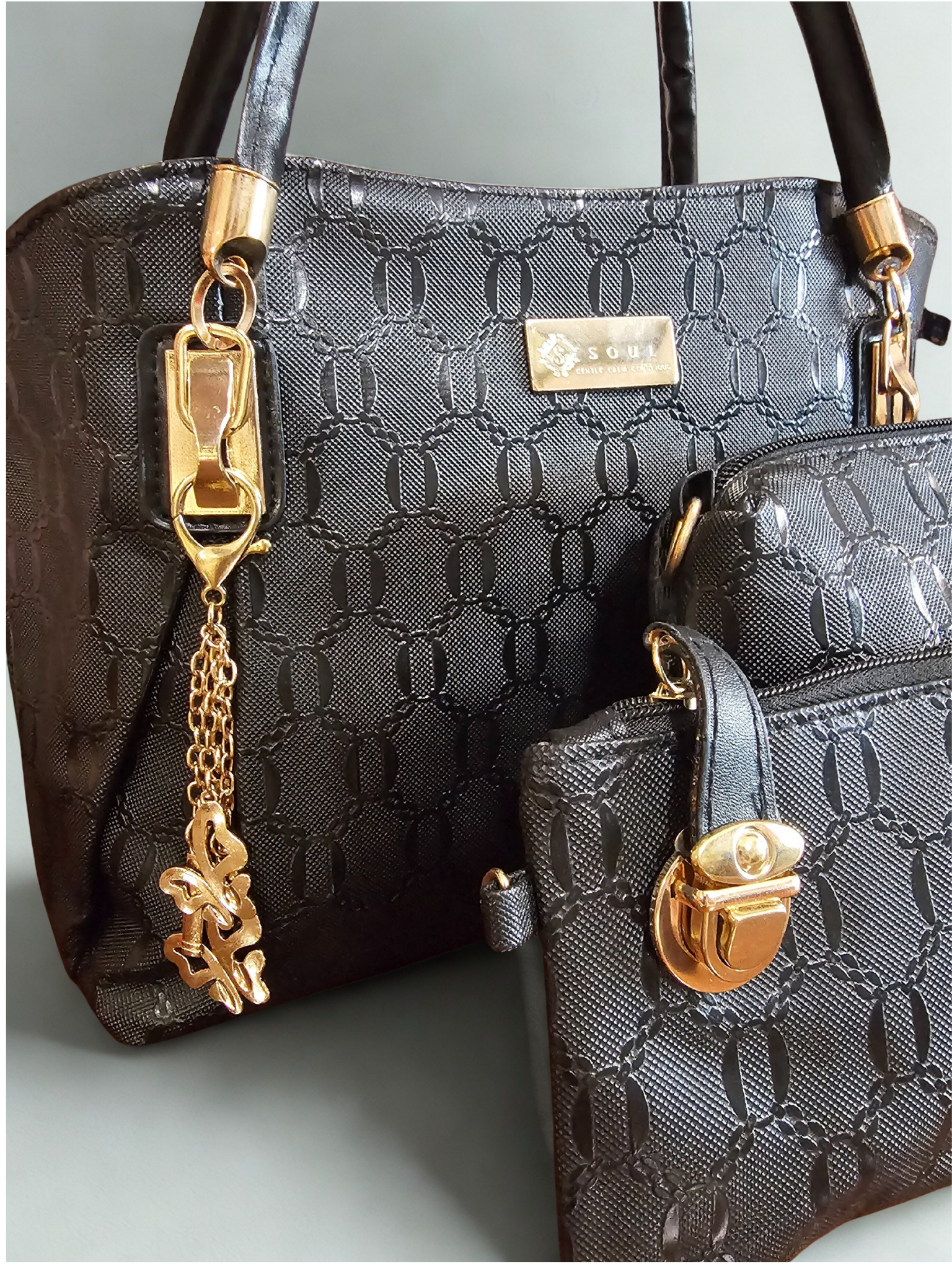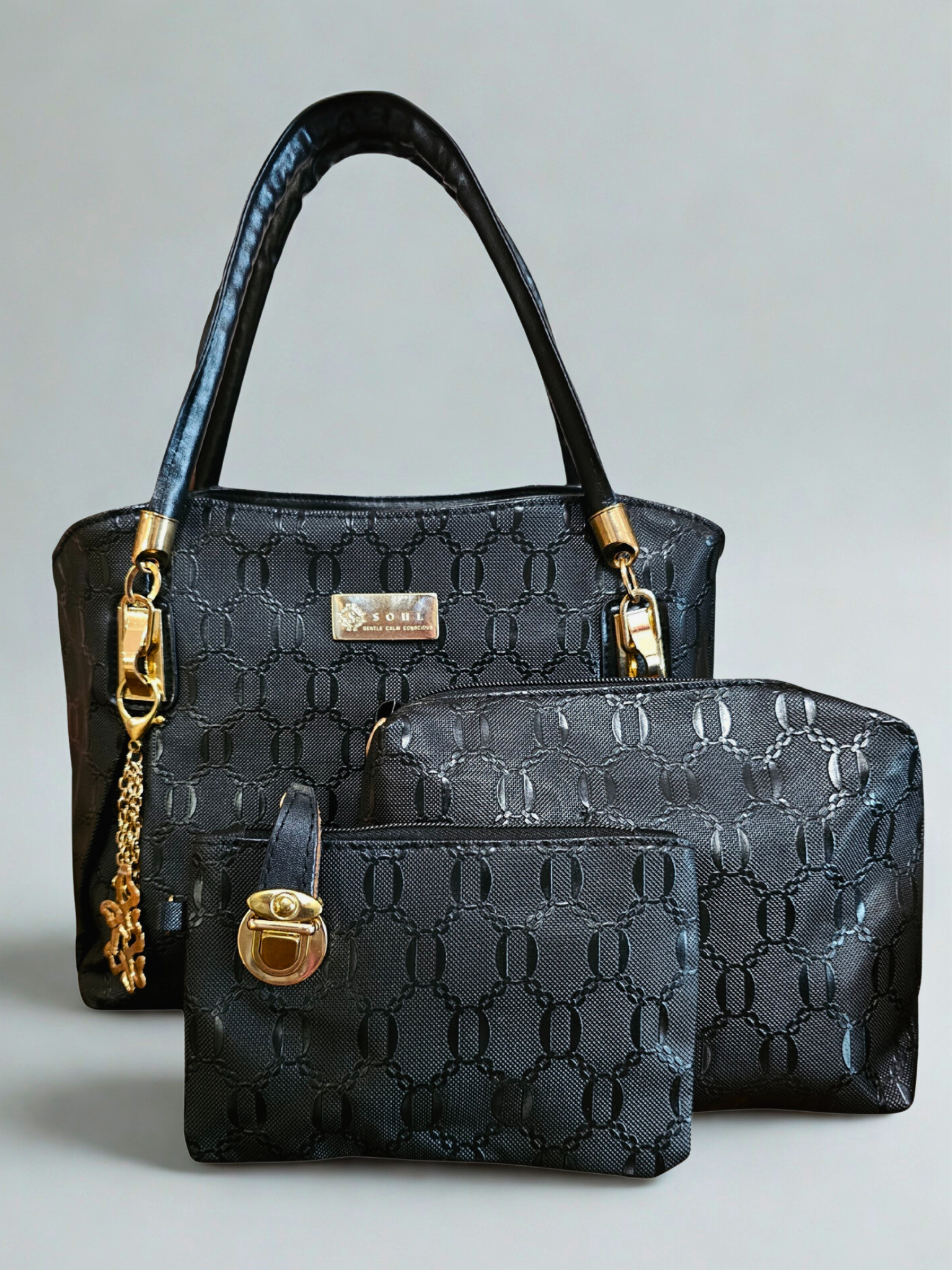 SOUL | Γυναικεία Τσάντα Χειρός σε Μαύρο Χρώμα  με Σετ Αξεσουάρ