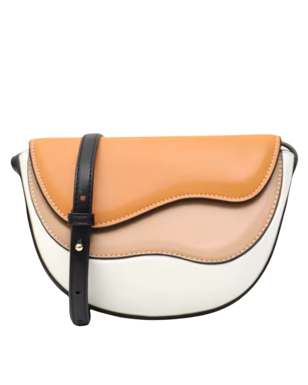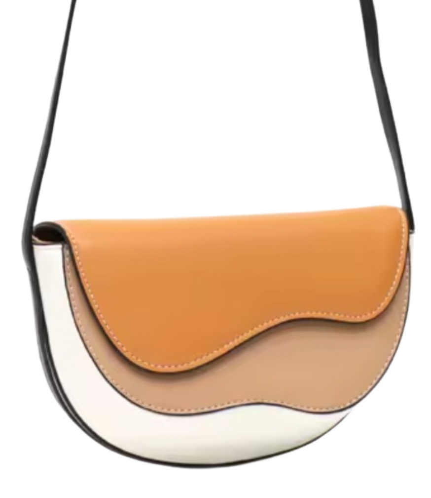 Soul | Τσάντα Χιαστί με Καμπύλες σε Πορτοκαλοκαφέ, Μπεζ & Λευκό