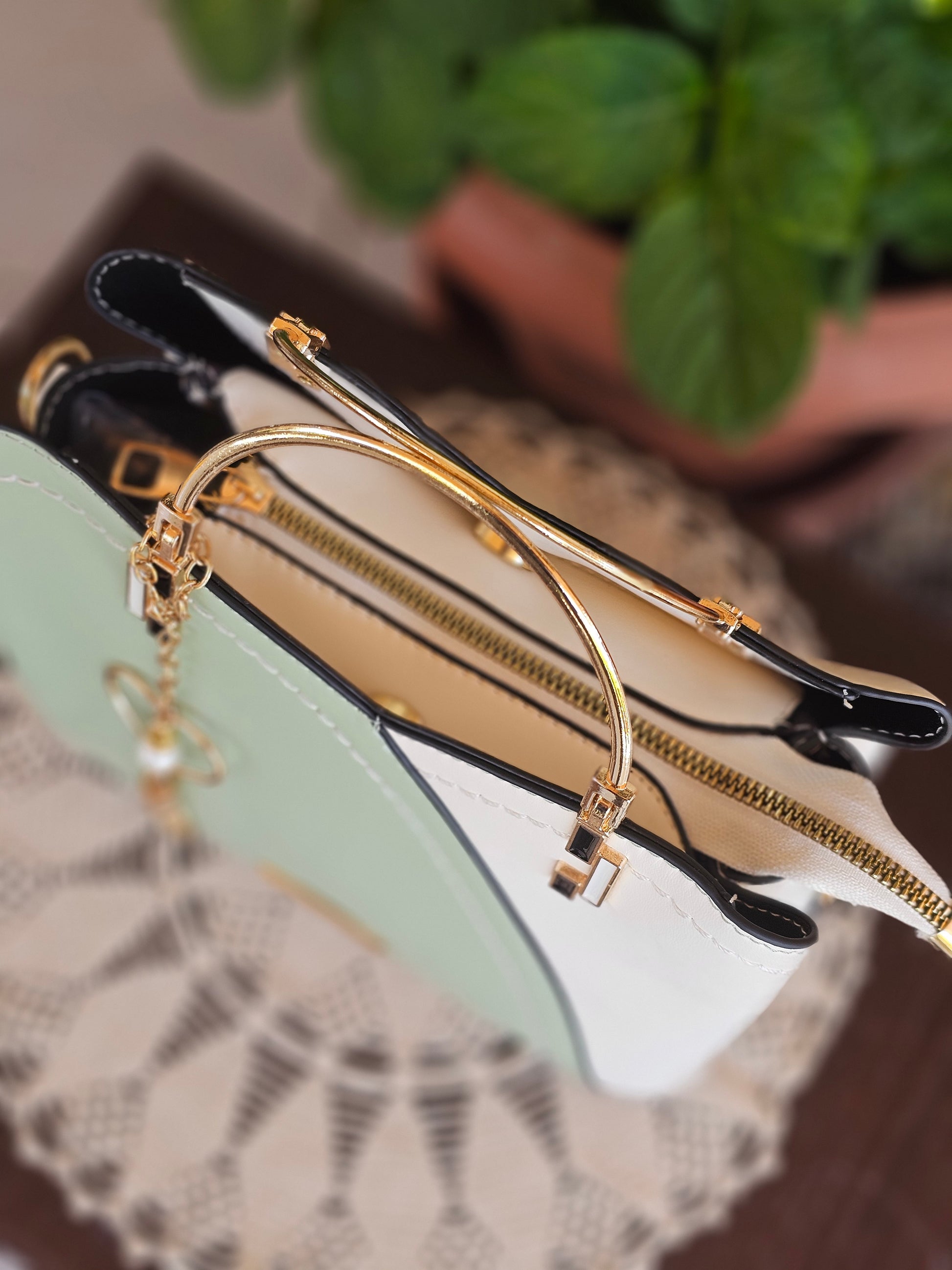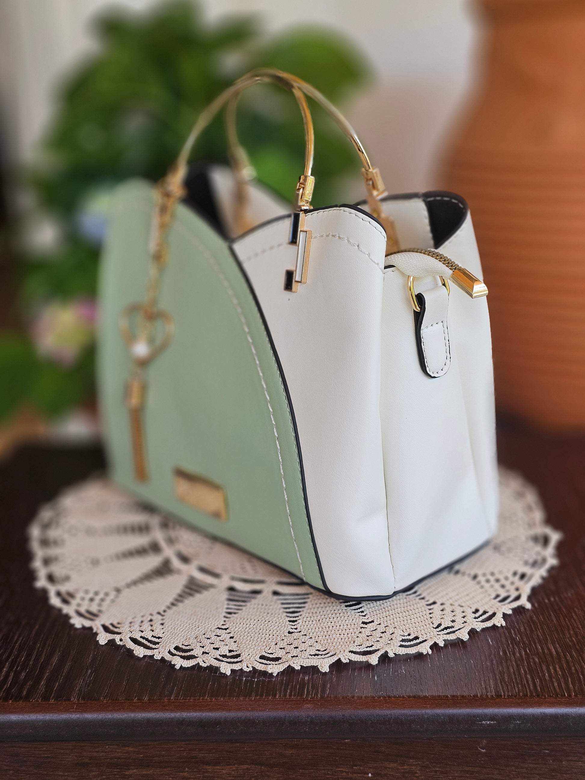 Γυναικεία τσάντα χιαστί σε βεραμάν και λευκό χρώμα