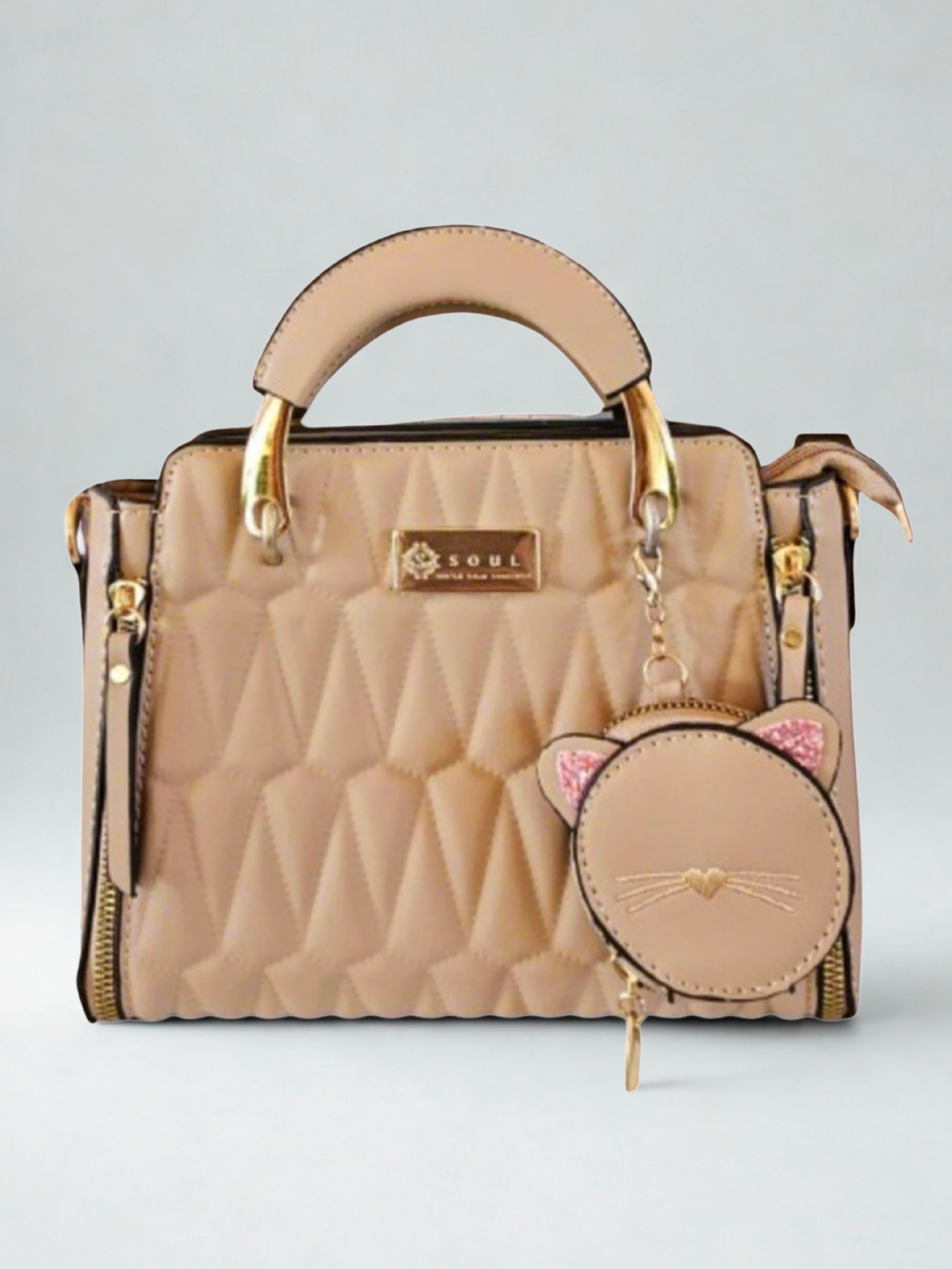 Soul | Γυναικεία Τσάντα με Ανάγλυφο Μοτίβο Ρόμβων σε Κρεμ Απόχρωση