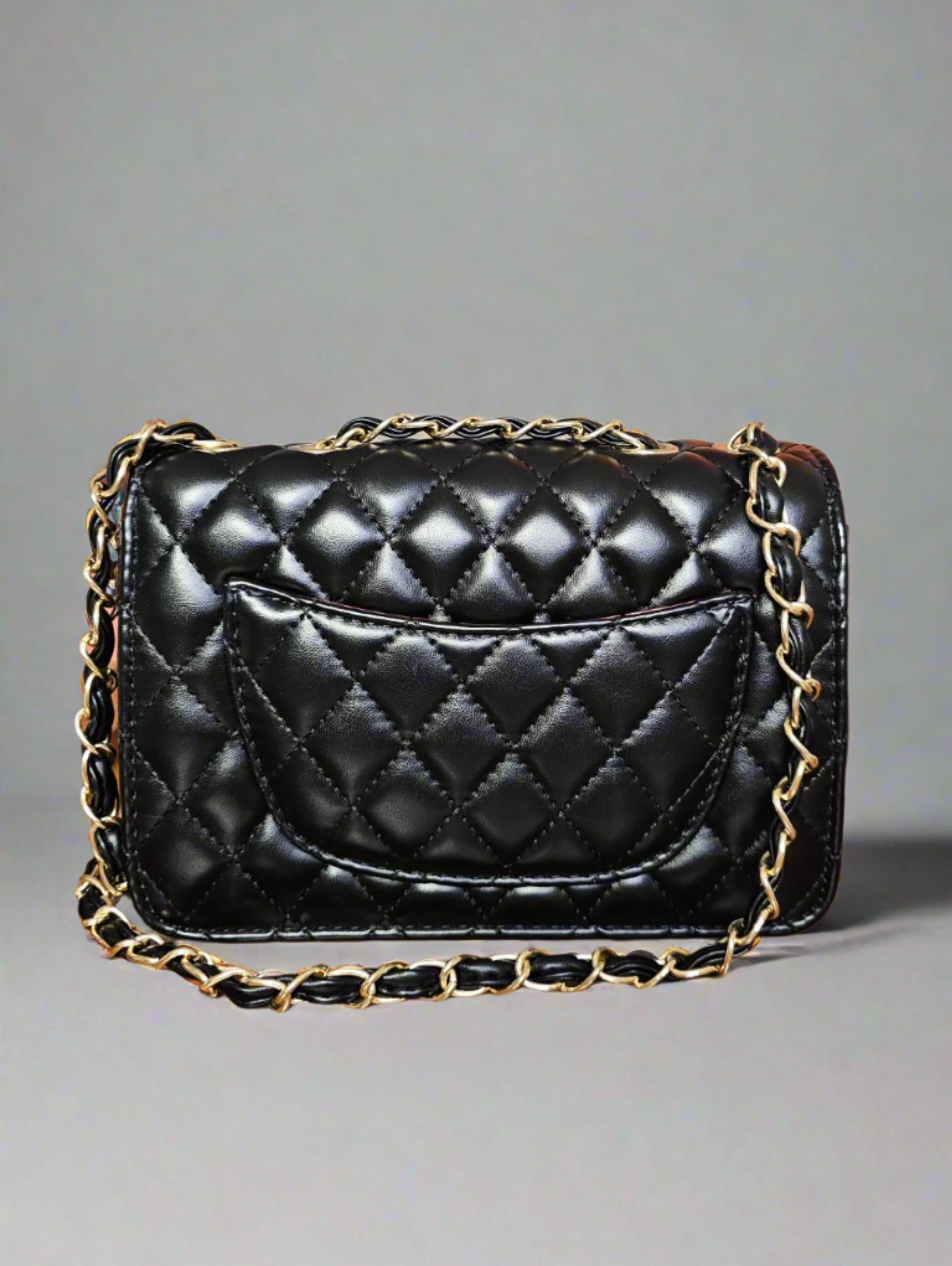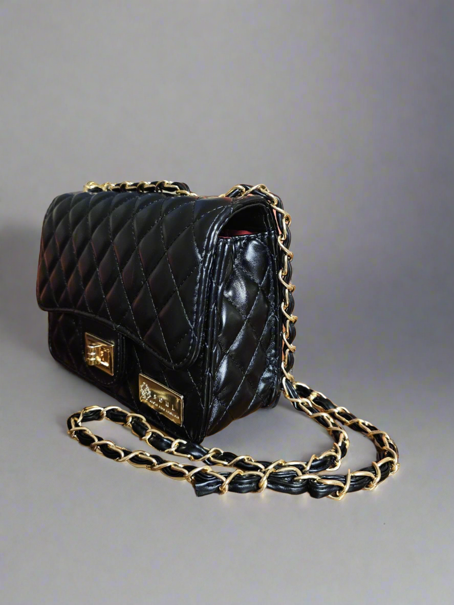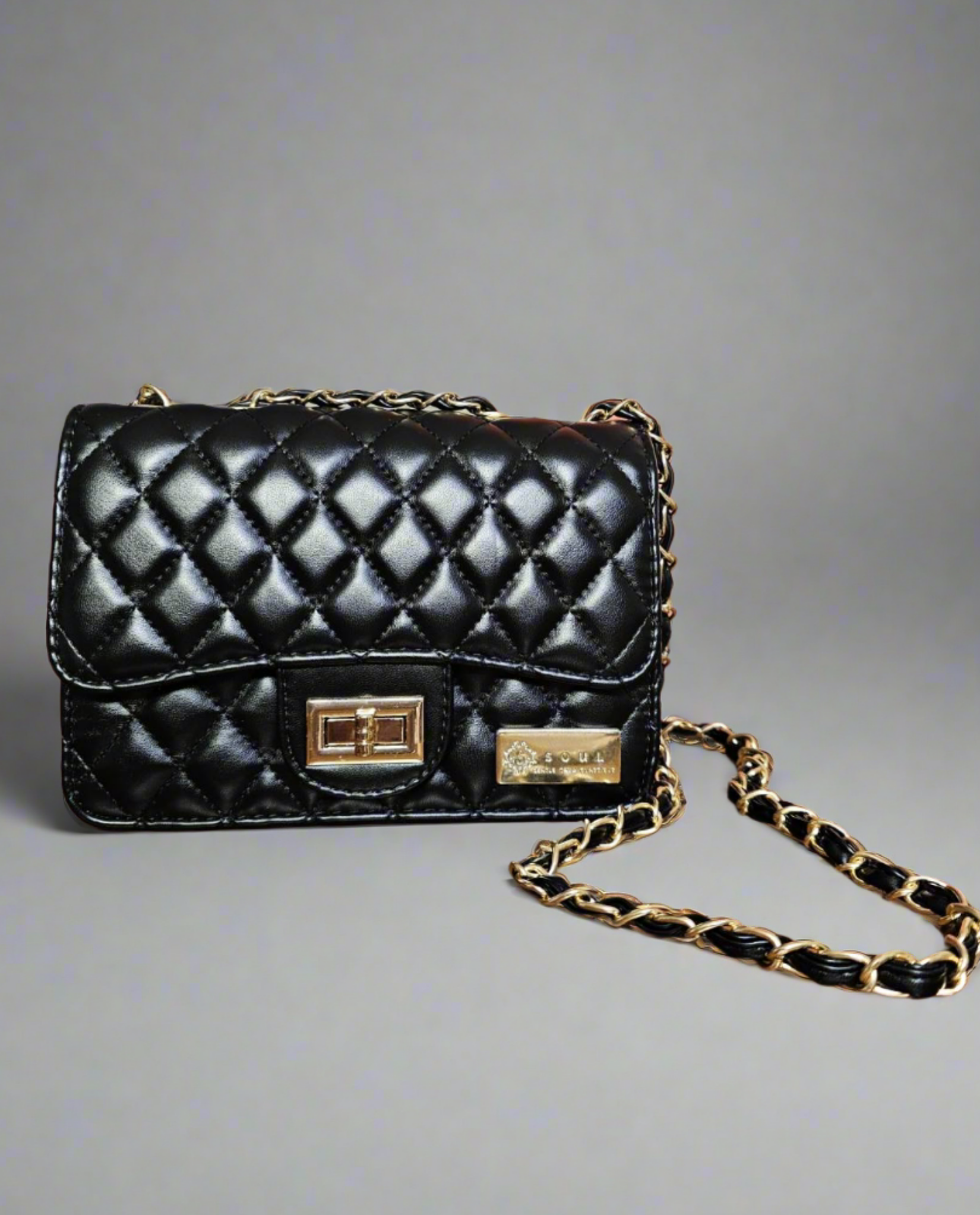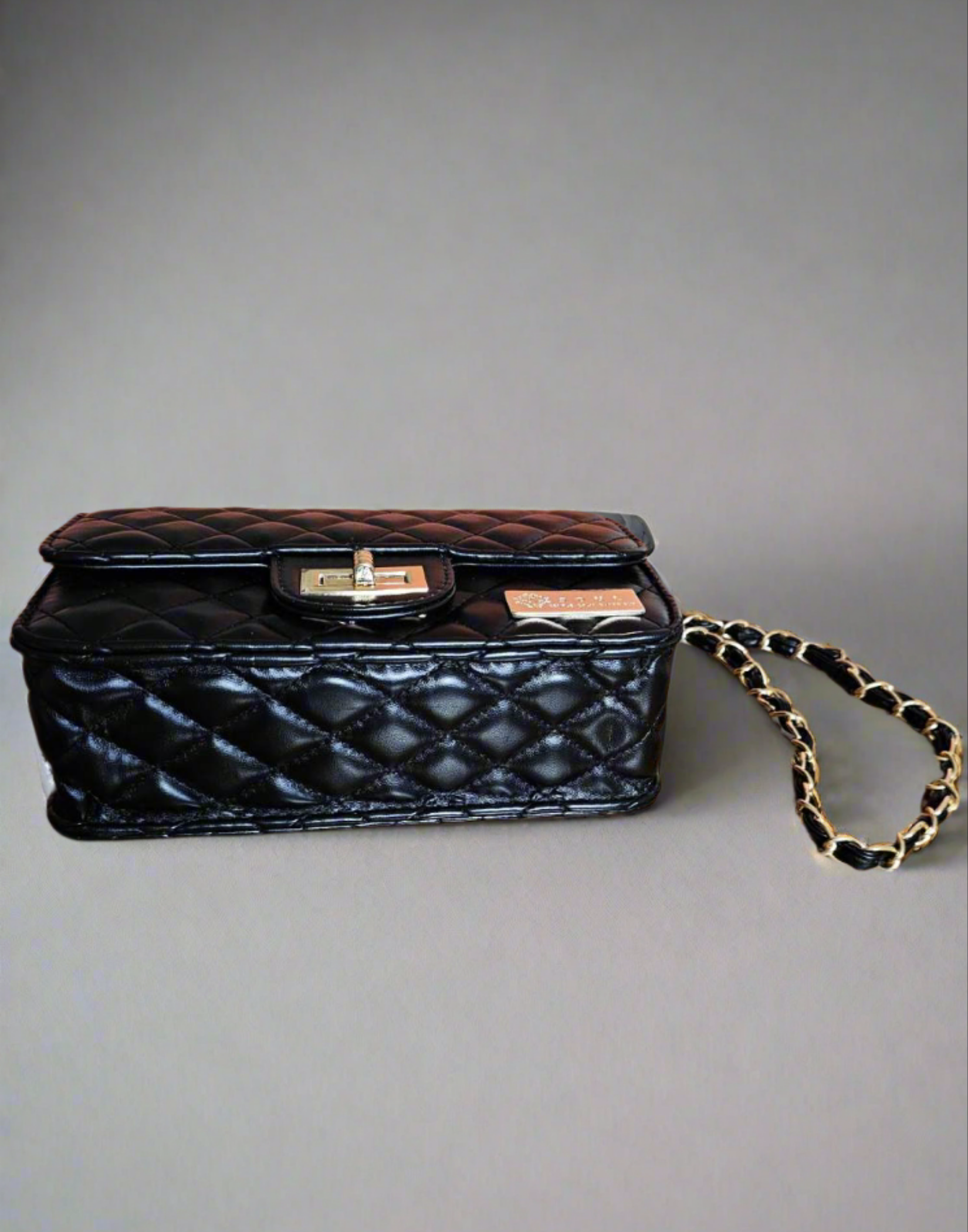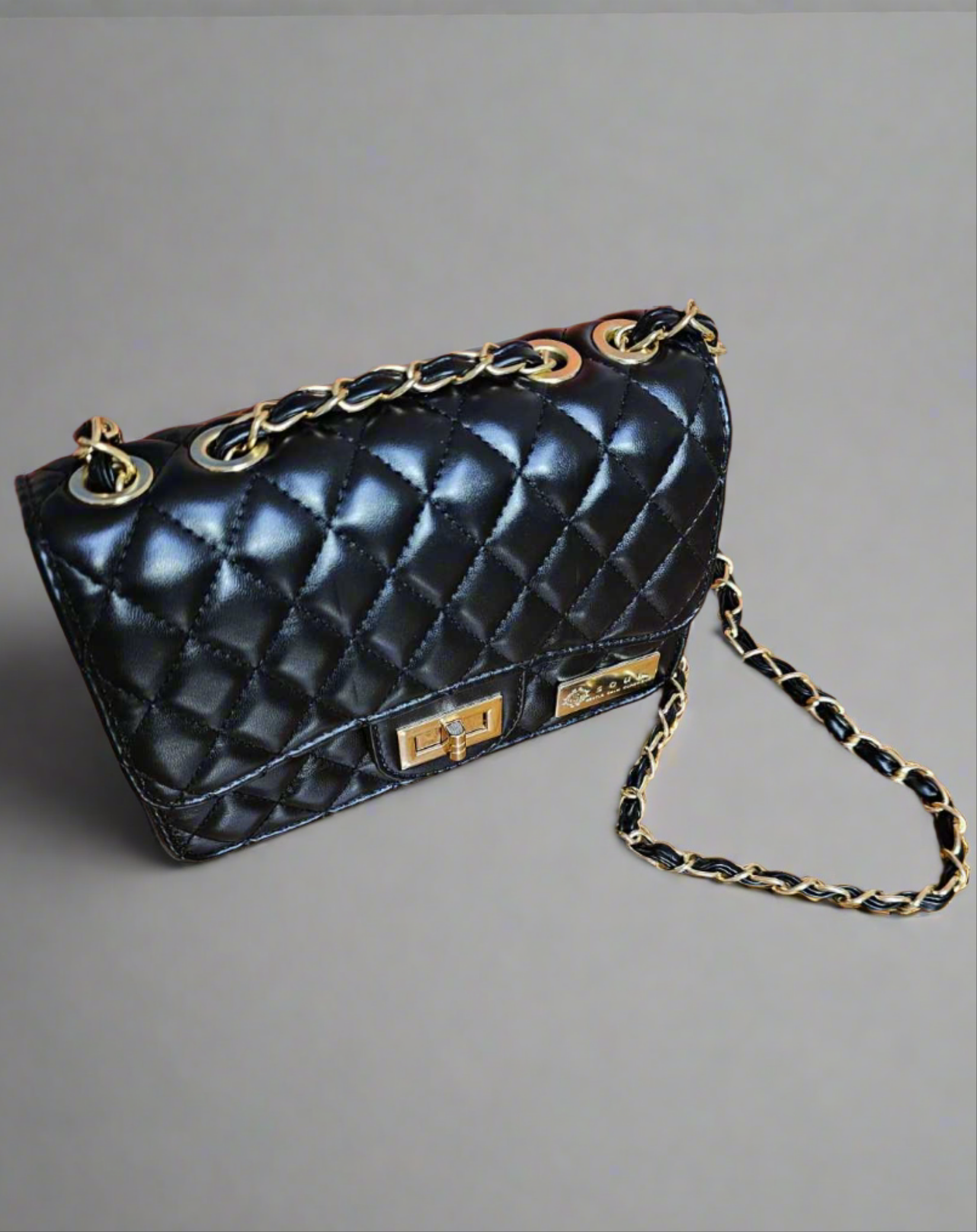 Γυναικεία τσάντα ώμου σε μαύρο χρώμα με καπιτονέ υφή