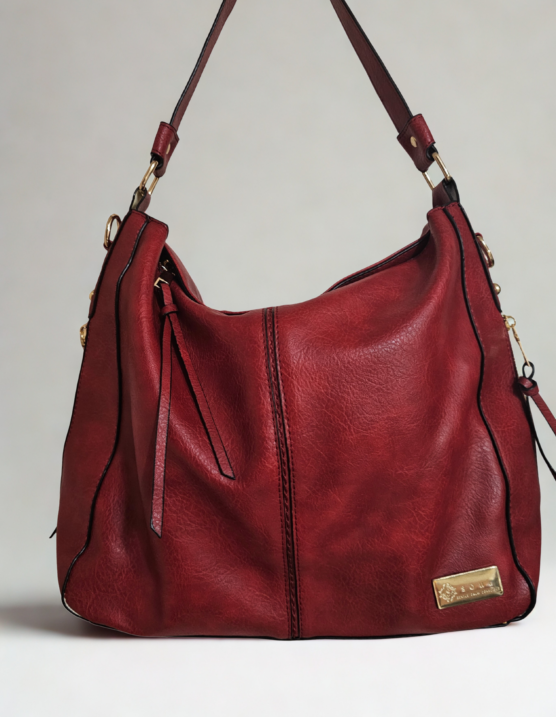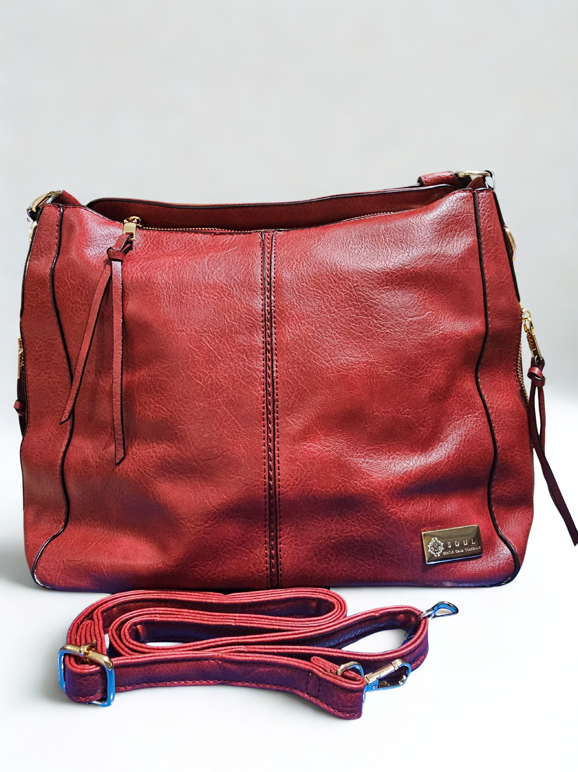 SOUL “Noema” | Γυναικεία Τσάντα Ώμου Μεγάλης Χωρητικότητας σε Βαθύ Καμμένο Κόκκινο