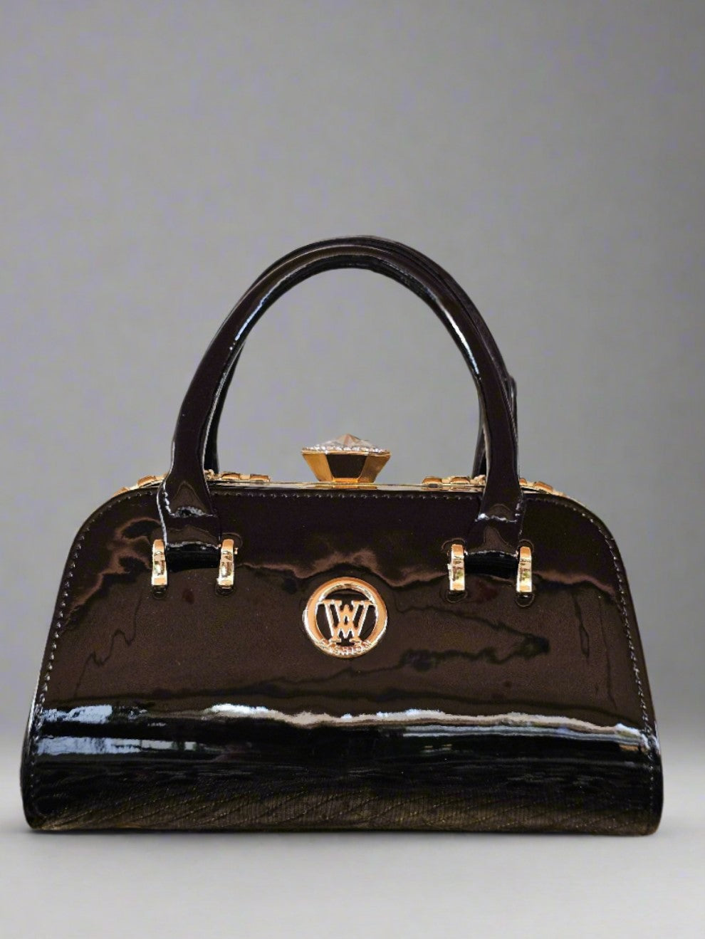 Η κατασκευή από γυαλιστερό λουστρίνι της χαρίζει πολυτελή υφή και κομψότητα.